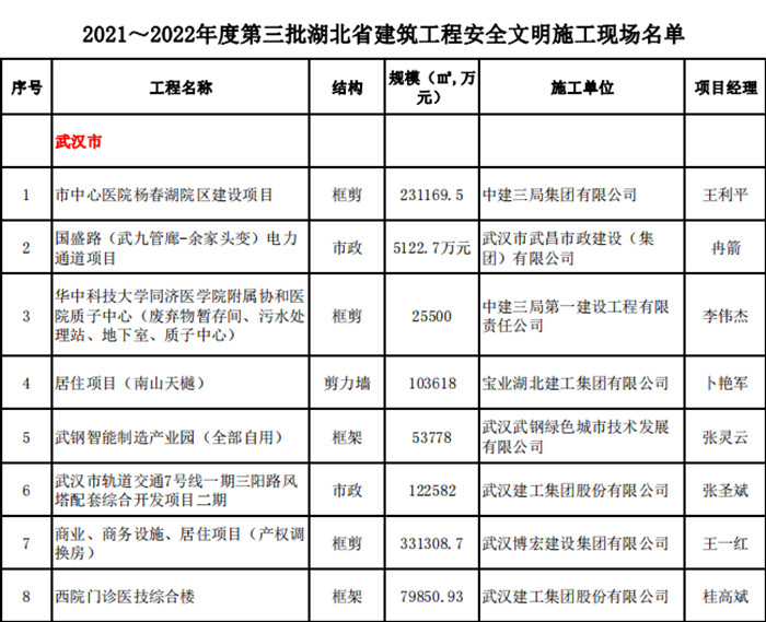 9月29日,從湖北省建設(shè)工程質(zhì)量安全協(xié)會(huì)傳來(lái)喜訊:由漢江城建集團(tuán)承建的湖北文理學(xué)院新校區(qū)先進(jìn)制造業(yè)實(shí)訓(xùn)基地、華中農(nóng)業(yè)大學(xué)襄陽(yáng)校區(qū)(現(xiàn)代農(nóng)業(yè)研究院)、湖北省鄂西北(襄陽(yáng))重大疫情救治基地三個(gè)項(xiàng)目同時(shí)榮登2021~2022年度第三批湖北省建筑工程安全文明施工現(xiàn)場(chǎng)和2022~2023年第一批湖北省建筑結(jié)構(gòu)優(yōu)質(zhì)工程項(xiàng)目名單。