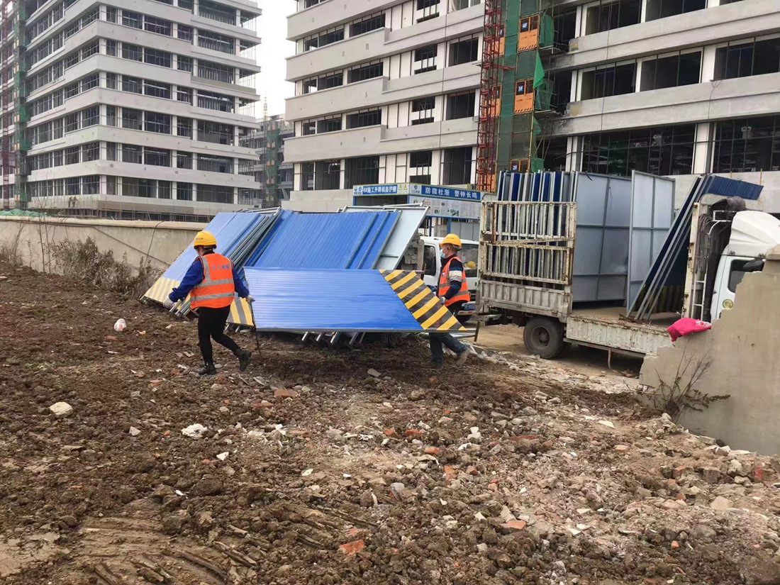 針對(duì)此現(xiàn)象,交安公司迅速組織施工人員,前往存在圍擋傾倒現(xiàn)象的施工現(xiàn)場(chǎng)進(jìn)行圍擋維修。在持續(xù)大風(fēng)的情況下,全體搶修人員絲毫沒有放松搶修力度,而是堅(jiān)持不懈的工作,維修現(xiàn)場(chǎng)一片繁忙,經(jīng)過八個(gè)小時(shí)的奮力搶修下,最終順利修復(fù)完成了所有傾倒的圍擋,也將損失降至了最低。