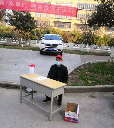 疫情就是命令,由于真武山家屬院位于襄城檀溪社區(qū),張軍政居住在樊城區(qū),每天他都要從樊城往返于襄城,安排落實(shí)人員值班管理情況和配合檀溪社區(qū)做疫情宣傳工作,為了工作他一邊要防范自己被感染上,一邊還要防范家人被感染,他的妻子是襄州醫(yī)院的醫(yī)務(wù)工作者,在疫情防控期間,工作也特別繁忙,無法兼顧家庭事務(wù),在這樣的情況下,張軍政除了要做好單位上的防疫工作外,還要承擔(dān)家里的所有事務(wù),在女兒即將高考、妻子無法兼顧家庭的時(shí)期,困難并沒有難倒他,從沒有因?yàn)榧彝ナ聞?wù)遲到早退或者半句怨言。在疫情面前,他舍小家為大家,用責(zé)任和擔(dān)當(dāng)展現(xiàn)了一個(gè)共產(chǎn)黨員的情懷,因?yàn)樗缿?zhàn)“疫”不停,黨員不能退。