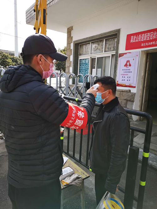 對(duì)出入小區(qū)人員檢查通行證,測(cè)量體溫,并進(jìn)行登記