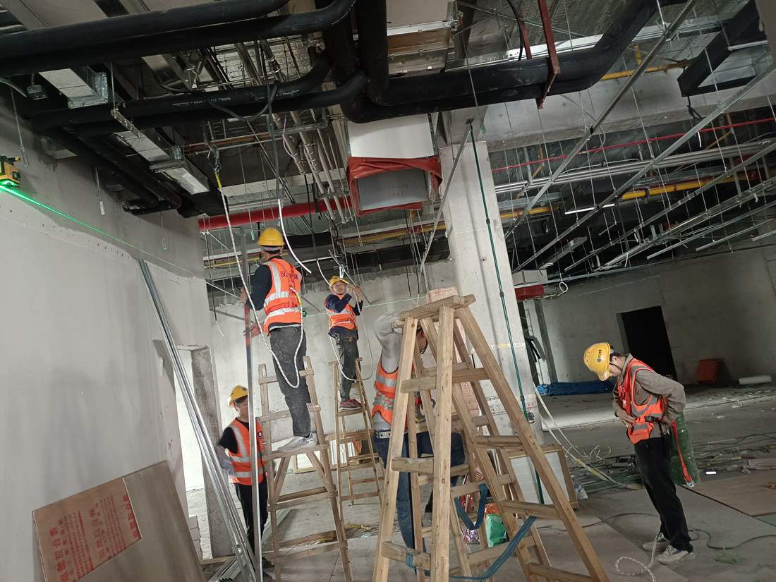 目前主體結構已經封頂,進入室外工程及裝修和安裝施工階段,消防工程完成78%,地下室裝修完成80%,室外工程完成70%,安裝工程完成75%,完成項目總進度70.59%。各專業(yè)班組流水作業(yè),爭取早日實現完工交付。