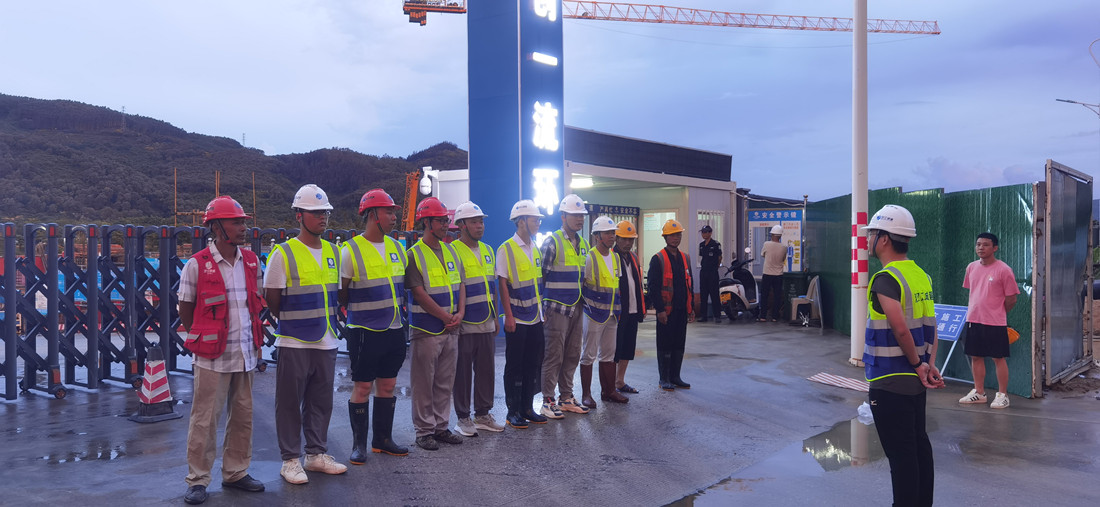 項(xiàng)目組織管理人員進(jìn)行防汛防臺(tái)巡檢