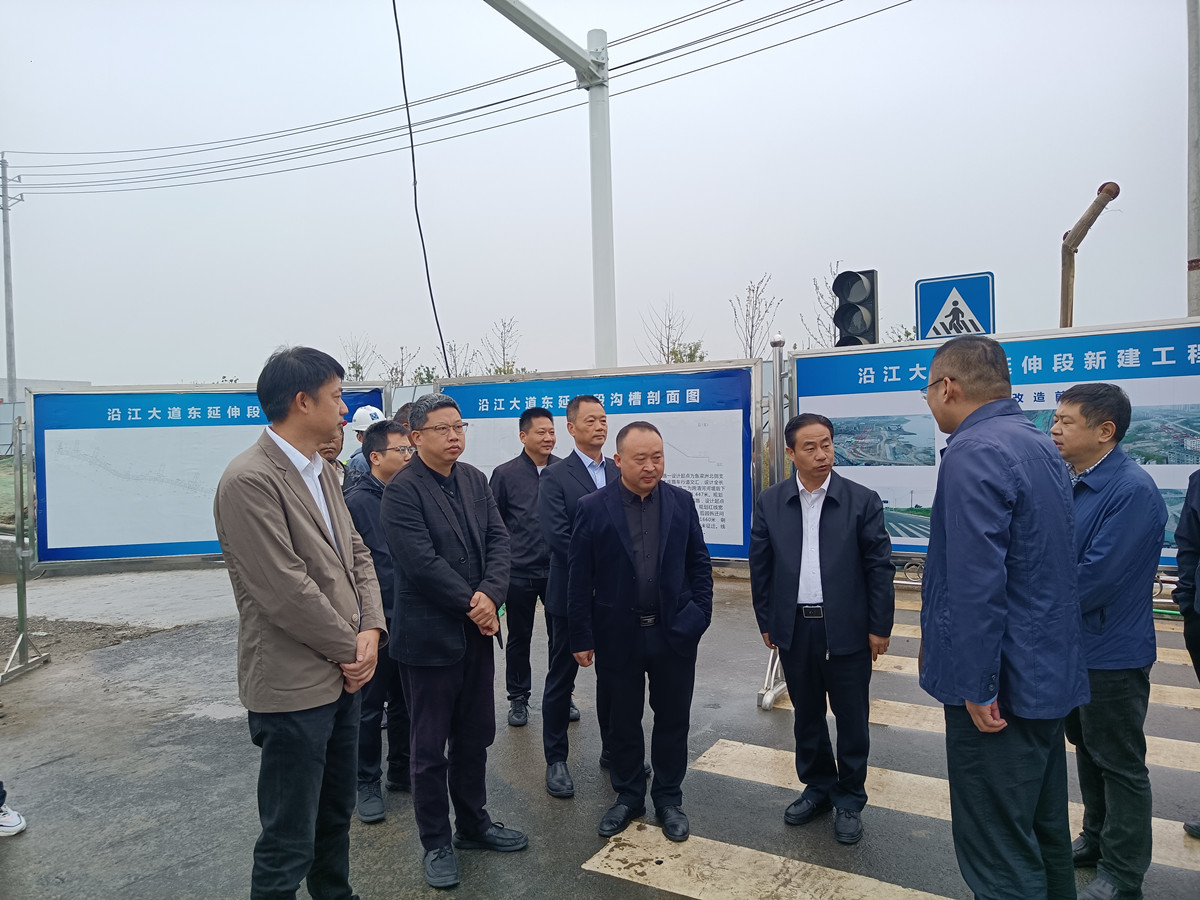 付勁松一行深入沿江大道東延伸段項(xiàng)目現(xiàn)場(chǎng),查看了道路施工情況及進(jìn)展情況,隨后在項(xiàng)目現(xiàn)場(chǎng)聽(tīng)取項(xiàng)目負(fù)責(zé)人關(guān)于項(xiàng)目進(jìn)展情況的匯報(bào),詳細(xì)了解了拆遷征地工作進(jìn)展及項(xiàng)目目前存在的困難。