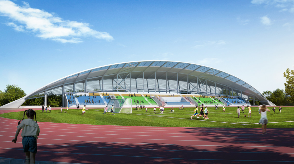湖北文理學(xué)院理工學(xué)院修繕二期設(shè)計(jì)施工總承包建設(shè)項(xiàng)目占地面積1794㎡,總建筑面積3556㎡,造價(jià)1200萬元。項(xiàng)目包括看臺(tái)主體1762㎡、下部輔助用房1794㎡、罩棚、附屬道路、室外管網(wǎng)及綠化等工程,其中看臺(tái)主體為1層框架結(jié)構(gòu),建筑高度8.25m,東西寬12.3m,南北跨度119m,采用長(zhǎng)螺旋鉆孔壓灌樁承臺(tái)基礎(chǔ),鋼結(jié)構(gòu)罩棚高24.3m,建成后能滿足湖北文理學(xué)院理工學(xué)院師生文化體育活動(dòng)需求,給廣大師生提供安全、舒適、充裕的體育鍛煉場(chǎng)所,為學(xué)校體育工作促進(jìn)全校師生體育鍛煉、健全人格、強(qiáng)健體魄、健康發(fā)展提供了有力的基礎(chǔ)保障。