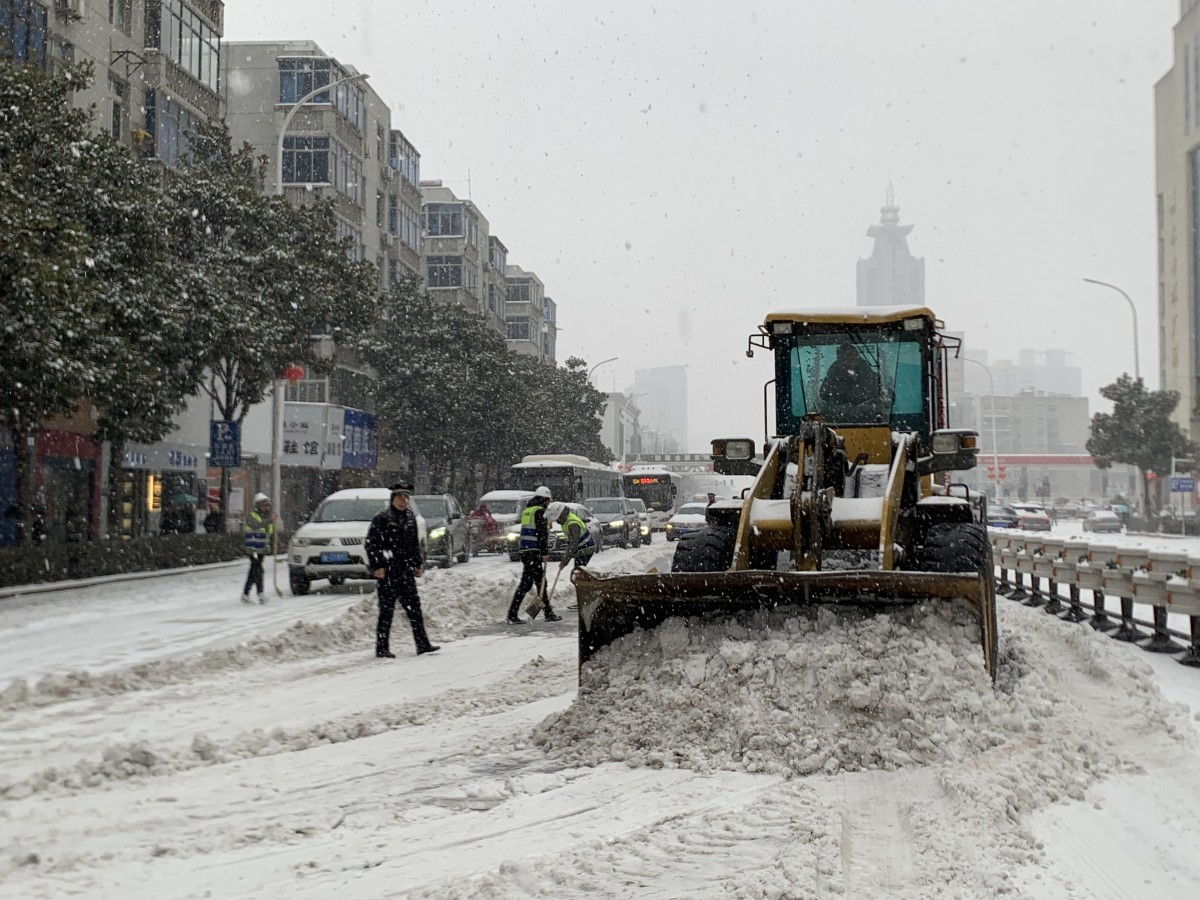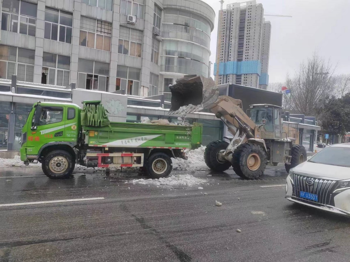 與此同時(shí)接令而動(dòng),組織人員51余人、鐵鍬50把、城建裝載機(jī)13臺(tái)、平地機(jī)2臺(tái)、大小型渣土運(yùn)輸車23臺(tái),分別投入到二橋、三橋、五橋、襄城區(qū)龐公及繞城南路、東津鹿門大道、襄陽(yáng)四中門口、集團(tuán)公司院內(nèi)清掃積雪,保障道路通行。