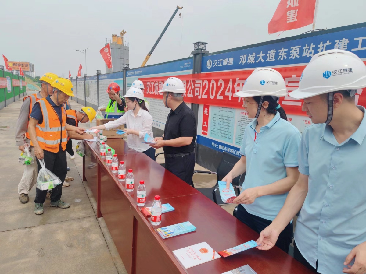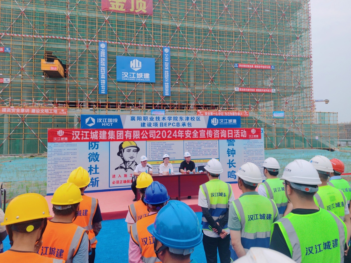 6月16日上午,漢江城建集團(tuán)在鄧城大道東泵站擴(kuò)建工程、襄陽(yáng)職業(yè)技術(shù)學(xué)院東津校區(qū)建設(shè)項(xiàng)目開展“安全宣傳咨詢?nèi)?rdquo;活動(dòng)。集團(tuán)黨委委員、紀(jì)委書記曹晶晶,黨委委員、董事謝鋒,監(jiān)察審計(jì)部,質(zhì)量安全環(huán)保部及分(子)公司負(fù)責(zé)人參加活動(dòng)。