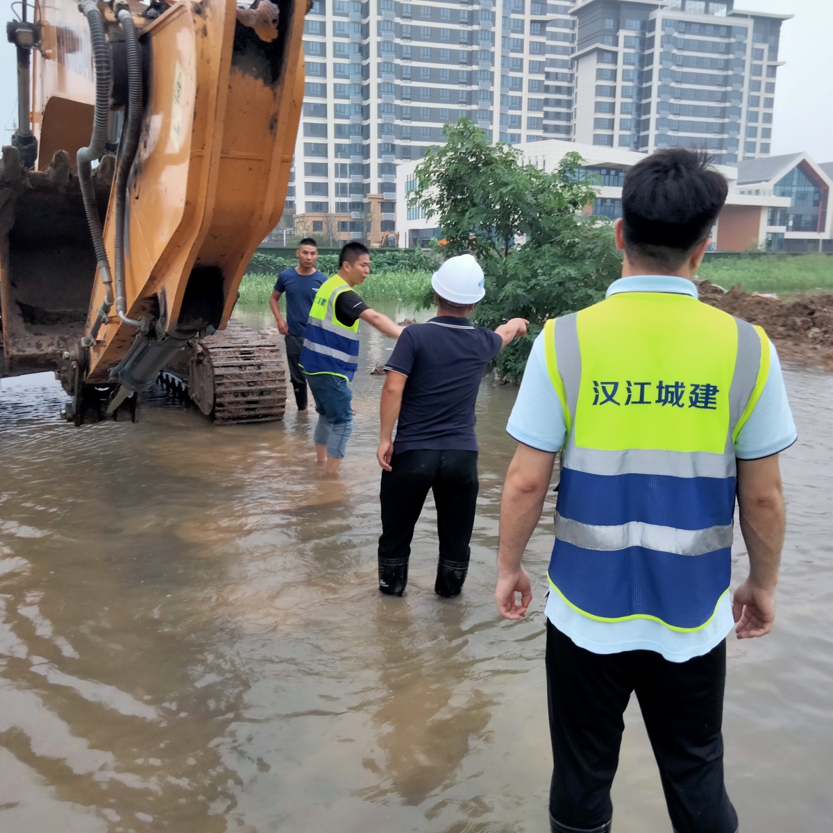 7月15日下午5點(diǎn)左右,大李溝洪水淹沒(méi)河堤向08片區(qū)倒灌,國(guó)投·芷岸項(xiàng)目部全員出動(dòng),動(dòng)員項(xiàng)目部人員20人次,協(xié)調(diào)防汛沙袋280余袋,對(duì)項(xiàng)目地下室出入口進(jìn)行封堵,保障項(xiàng)目本身安全。此外,聯(lián)合襄陽(yáng)路橋集團(tuán)、襄陽(yáng)園冶集團(tuán)組織5臺(tái)挖機(jī),對(duì)倒灌區(qū)域筑起擋水土壩設(shè)防,有效阻止了洪水倒灌,為片區(qū)內(nèi)建設(shè)工地及小區(qū)筑起“安全堤”,降低項(xiàng)目和片區(qū)內(nèi)人民財(cái)產(chǎn)損失,充分展現(xiàn)漢江城建集團(tuán)不怕困難、甘于奉獻(xiàn)的國(guó)企擔(dān)當(dāng)。