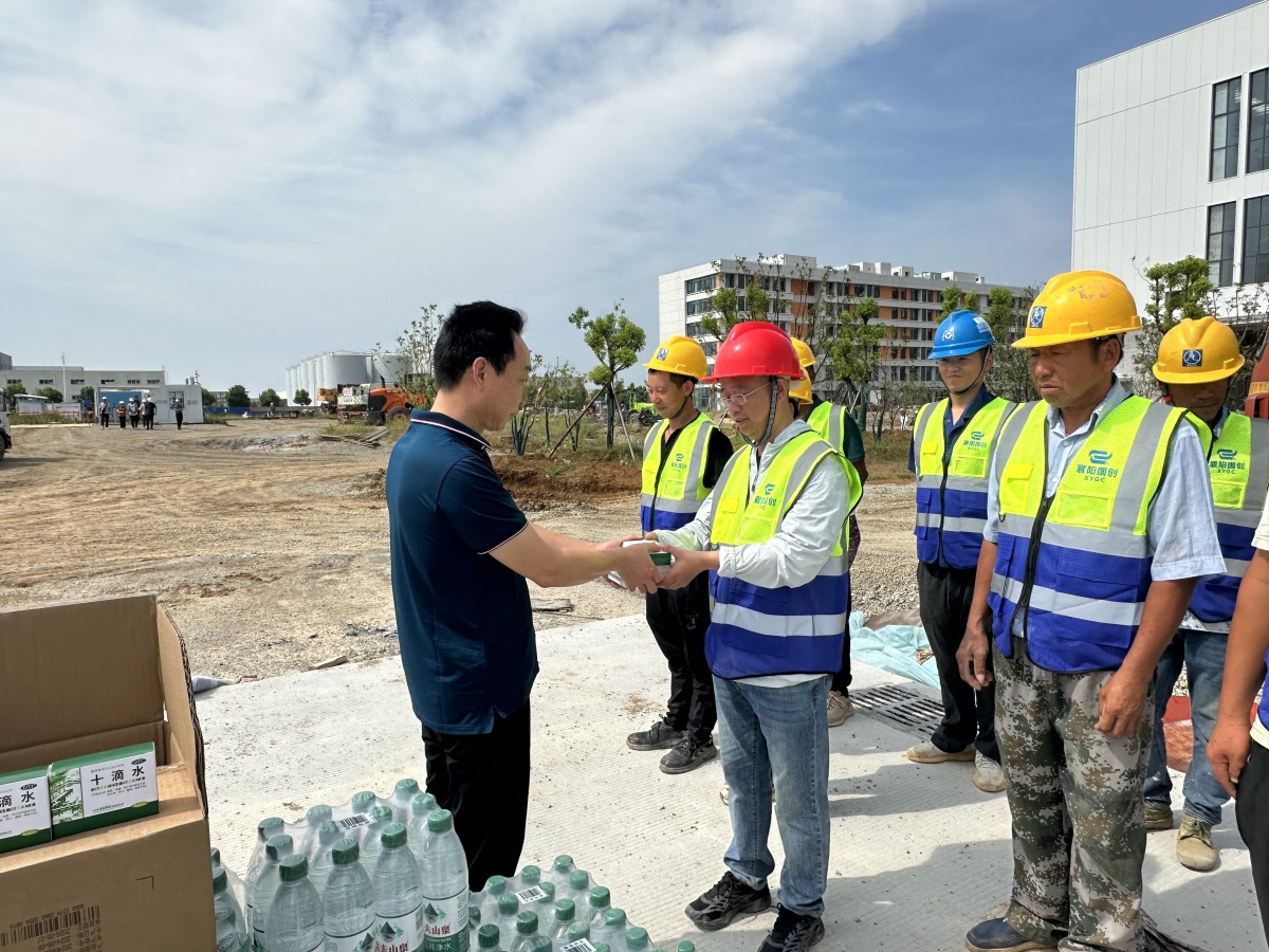 上午10點(diǎn),國(guó)創(chuàng)公司班子成員到達(dá)項(xiàng)目工地現(xiàn)場(chǎng),向辛勤工作的工人們送去了礦泉水、藿香正氣水、十滴水等防暑降溫物資,并叮囑大家在高溫天氣下注意防暑,確保身體健康。