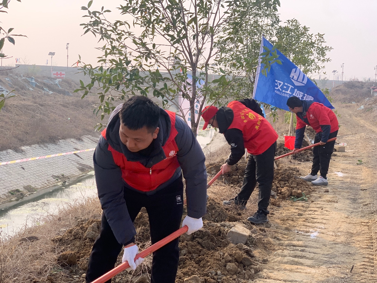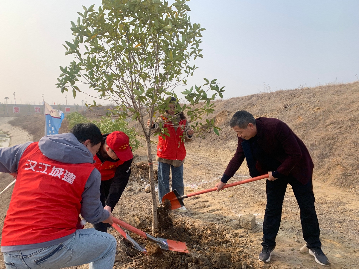 植樹(shù)現(xiàn)場(chǎng)熱火朝天,青年職工相互配合,或兩人一組,或三五成群,相互協(xié)作,干勁十足,揮鍬鏟土、扶苗填坑、踏土夯苗,每一道工序都一絲不茍。在大家的努力下,樹(shù)苗扎根沃土,迎風(fēng)飄揚(yáng),為漢江河畔增添了一抹新綠。