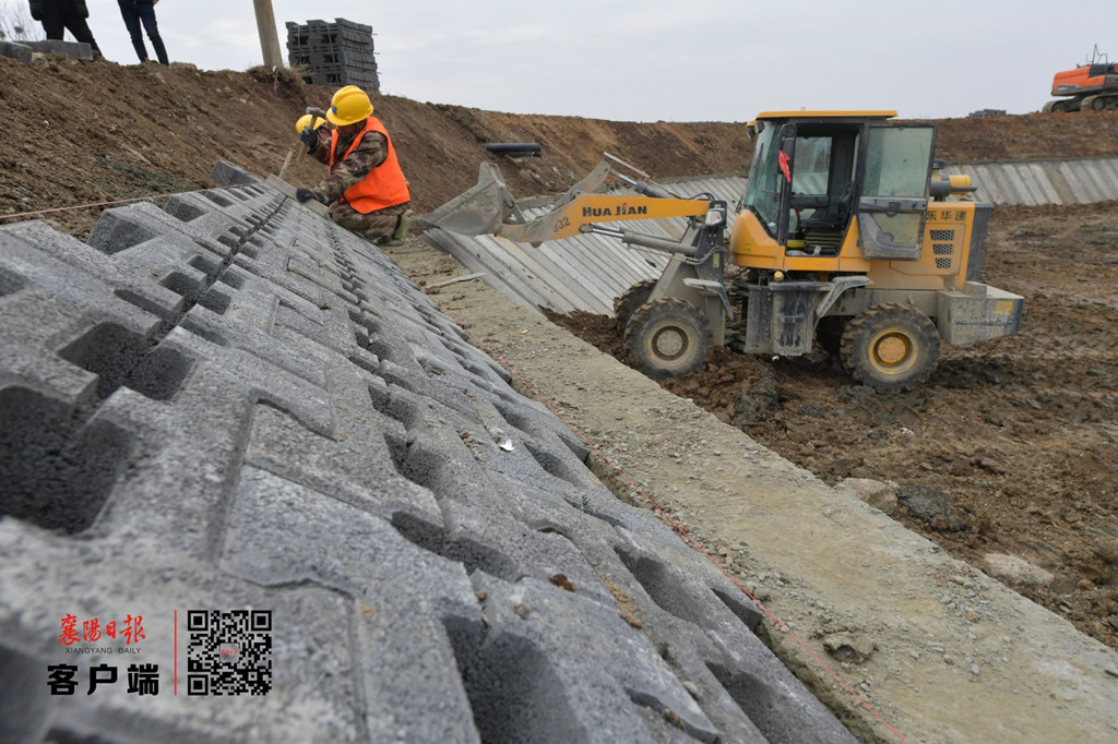 1月30日,在湖北省棗陽市琚灣鎮(zhèn)蔡西村旱改水施工現(xiàn)場,襄陽漢江城建集團有限公司施工人員正用建筑垃圾生產(chǎn)的新型連鎖式水工磚修建水渠。目前,這個工地共使用新型建材16050立方米。