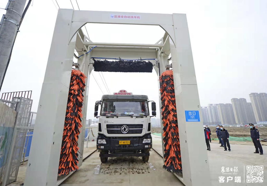 當(dāng)日,我市建設(shè)工地首個(gè)龍門(mén)式全自動(dòng)洗車(chē)機(jī)在襄陽(yáng)市兒童醫(yī)院建設(shè)工地正式投入使用,該裝置在原有的濾泥池、底盤(pán)清洗的基礎(chǔ)上,增加了高壓水洗和毛刷兩道清洗程序,不僅使底盤(pán)和車(chē)輪,就連車(chē)身也能沖刷干凈,實(shí)現(xiàn)渣土車(chē)“凈身出場(chǎng)”。