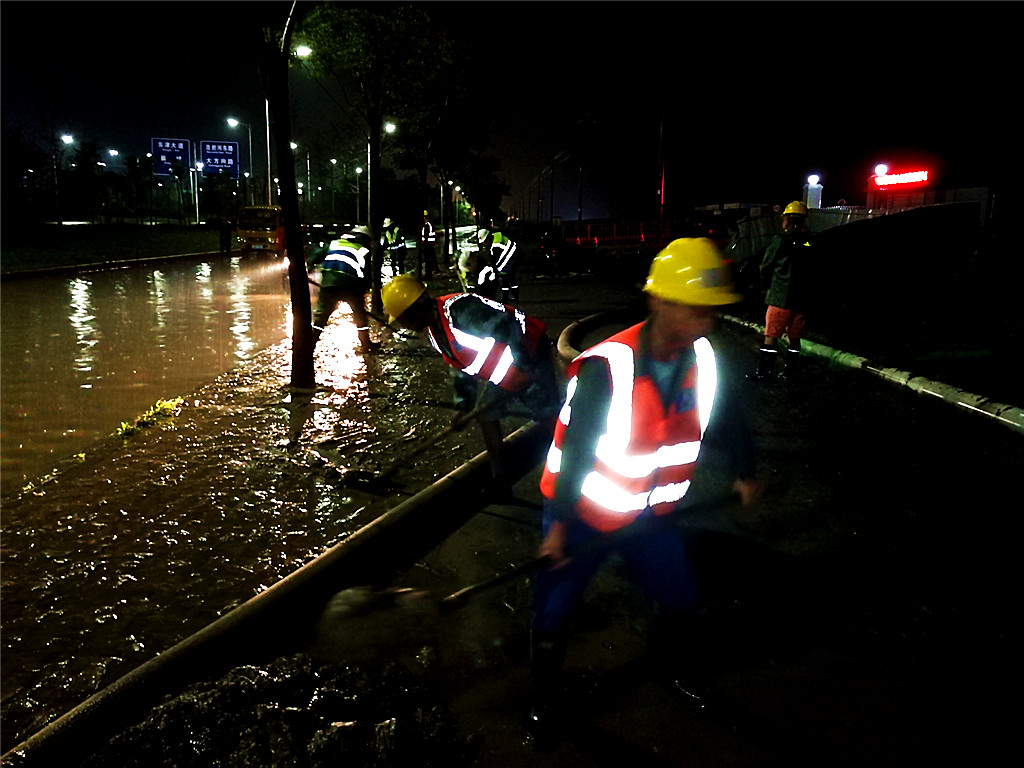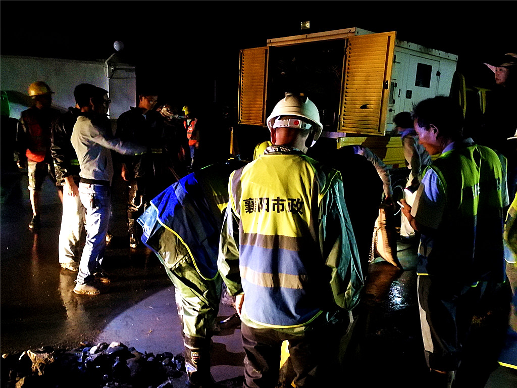 在2020年6月20日晚,受暴雨影響,襄陽市東津新區(qū)內(nèi)環(huán)南線華僑城段積水嚴(yán)重,造成華僑城、機場、高鐵站通往中心城區(qū)的重要交通樞紐中斷。漢江城建接到東津新區(qū)管委會通知后連夜搶險,當(dāng)日凌晨,路面積水退去,道路交通恢復(fù)正常。