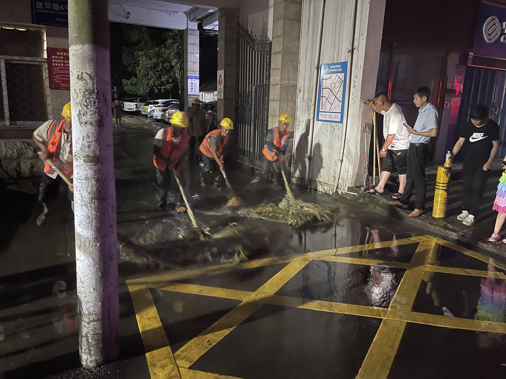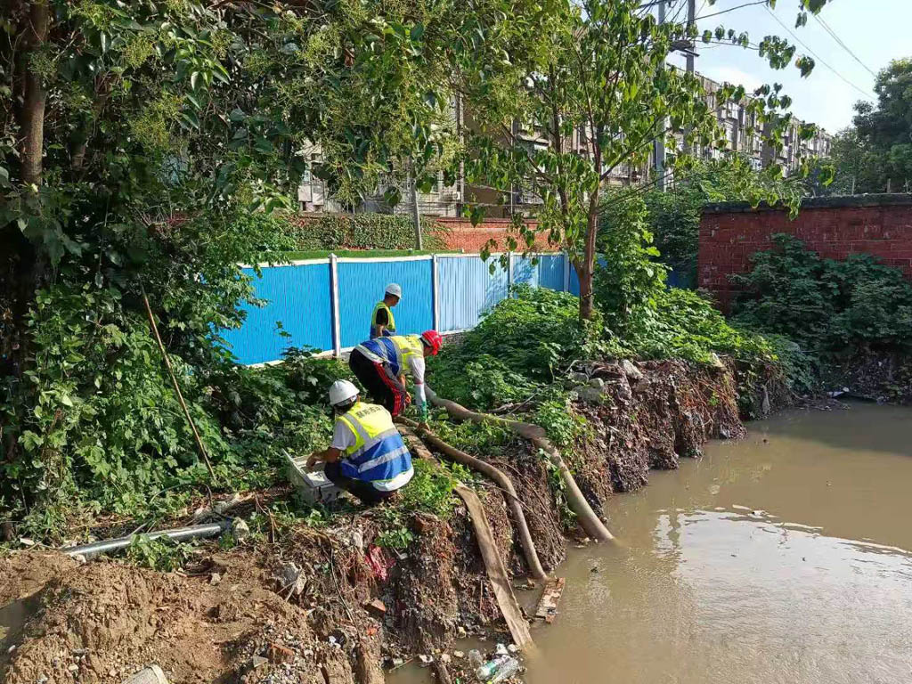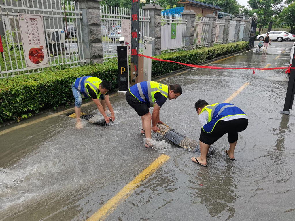 四季青項目部組織人員參與江華小區(qū)周邊排澇搶險及協(xié)助小區(qū)安裝臨時防護設施