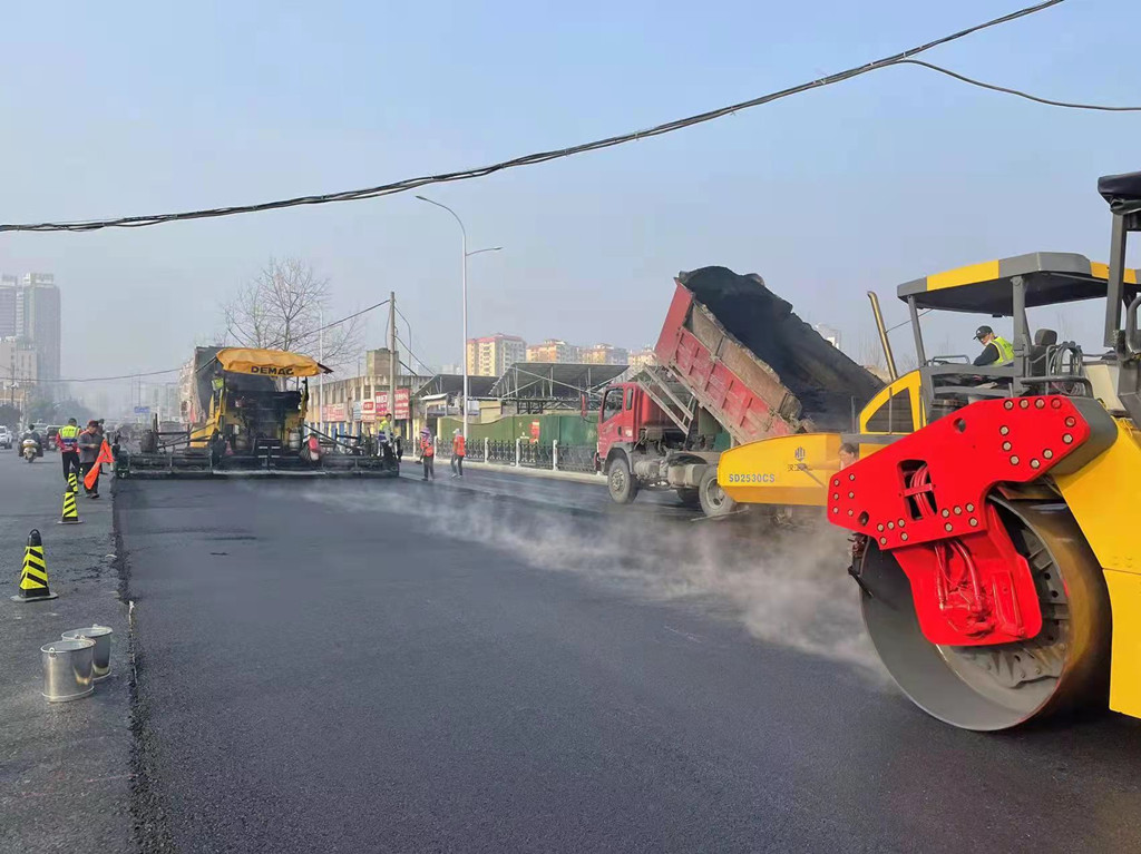 自瀝青攤鋪工作實施以來,第三分公司嚴(yán)格按照標(biāo)準(zhǔn)化施工要求,全體參建人員抓重點、克難點、保節(jié)點,搶抓有效工期,在保質(zhì)保量保安全的前提下,以最快的速度為周邊市民改善出行環(huán)境。