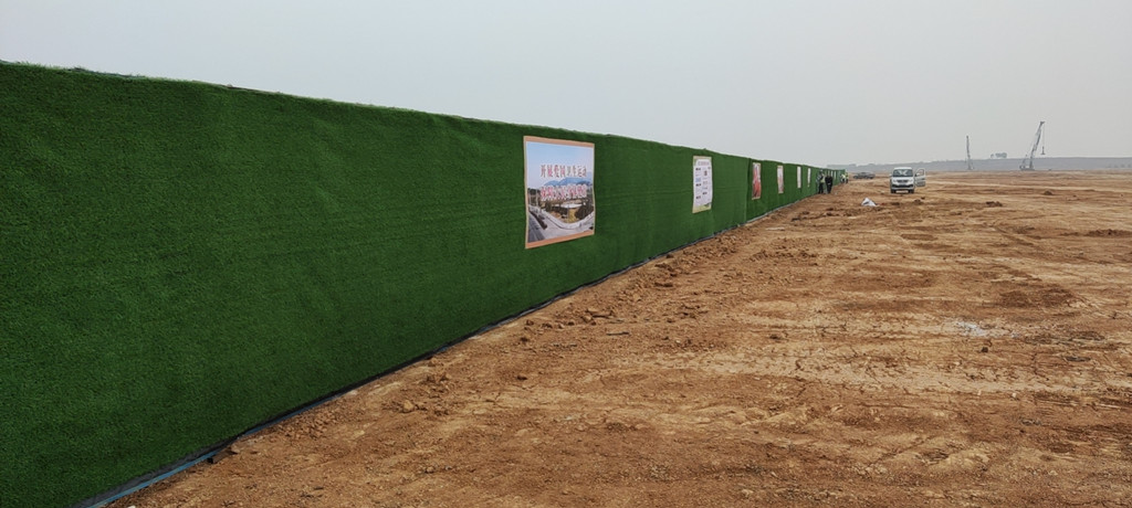在收到圍擋安裝任務(wù)后,交安公司迅速組織人員機械趕往施工現(xiàn)場,在12小時內(nèi)完成了600米的圍擋安裝、仿真草皮鋪設(shè)及創(chuàng)文宣傳工程。在保證安全和質(zhì)量的前提下,跑出交安公司“加速度”,為比亞迪產(chǎn)業(yè)園項目開工儀式順利進行提供了重要保障。