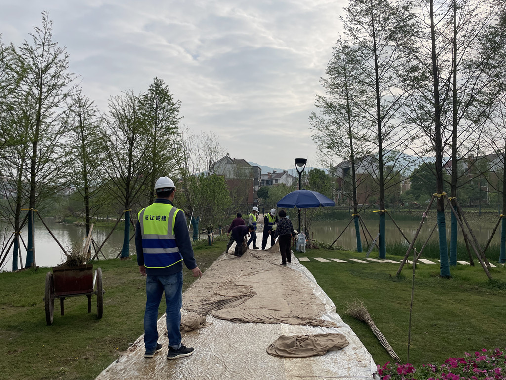 為了確保開園活動順利舉行,漢江城建襄水源項目部發(fā)揚“不懼艱險,迎難而上”的精神,面對近日大風多雨的天氣,不等不靠,以“拼搶實”的工作作風,組織500余人對園區(qū)的綠道、園路清洗、衛(wèi)生清理及成品保護工作,F(xiàn)場作業(yè)人員的衣服被雨水打濕,在大風下瑟瑟發(fā)抖,但他們?nèi)詻]放下手中的工作,支撐他們的是按期完工的信念----讓襄水源生態(tài)公園以詩情畫意的全新面貌展現(xiàn)給廣大市民朋友。