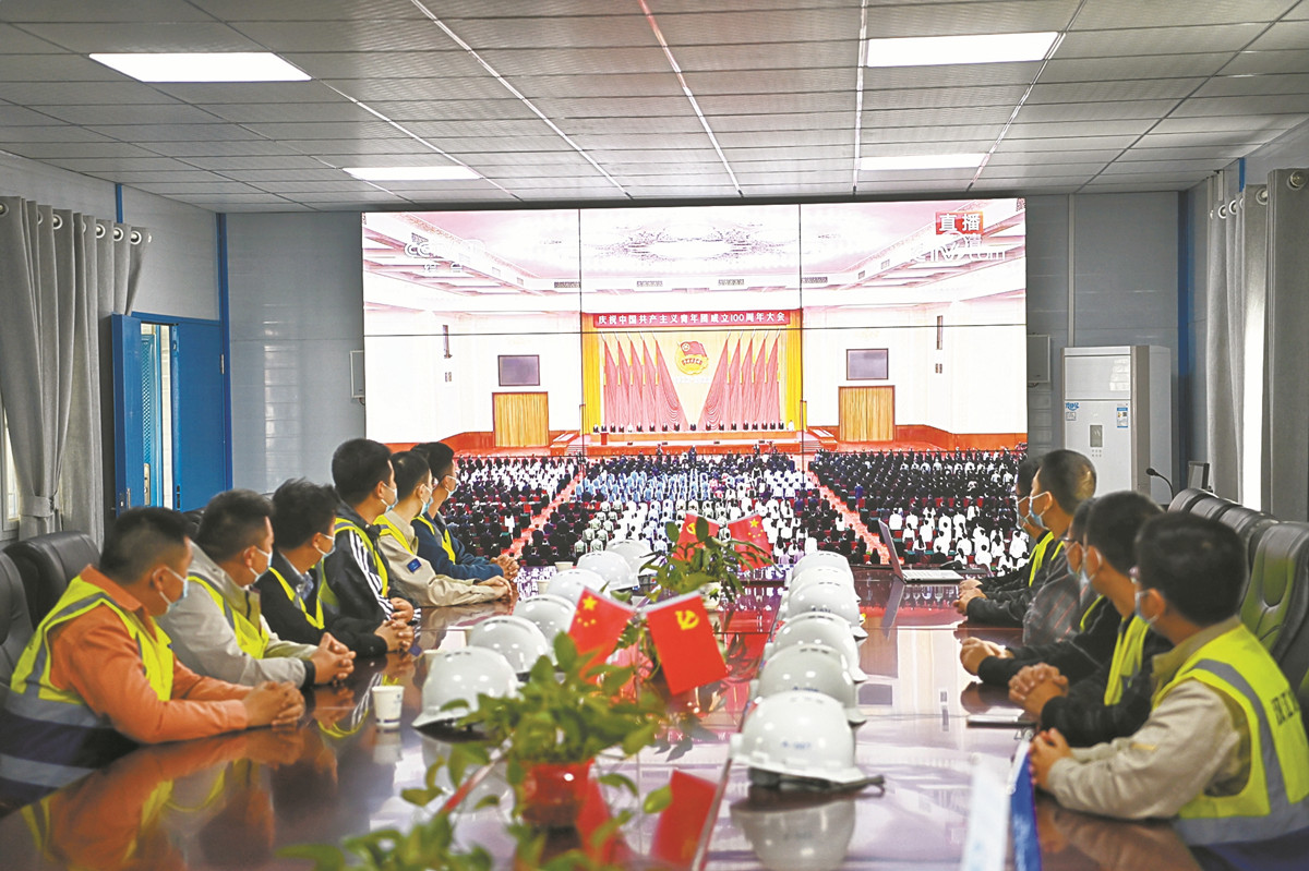 10日上午,在鄂西北(襄陽)重大疫情救治基地項(xiàng)目部,漢江城建集團(tuán)組織青年建設(shè)者收看慶祝中國共產(chǎn)主義青年團(tuán)成立100周年大會(huì)直播。