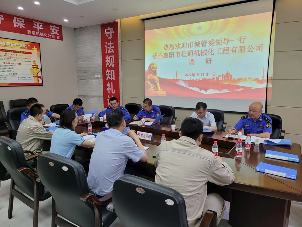為了鞏固我市創(chuàng)文成果,進一步加強城市市容管理,提升企業(yè)工作實效,5月31日,襄陽市城管委副主任周冰一行蒞臨漢江城建所屬子公司程通機械化工程有限公司進行調(diào)研,并召開溝通交流會,市城管委領導、程通公司相關部門參加此次會議。