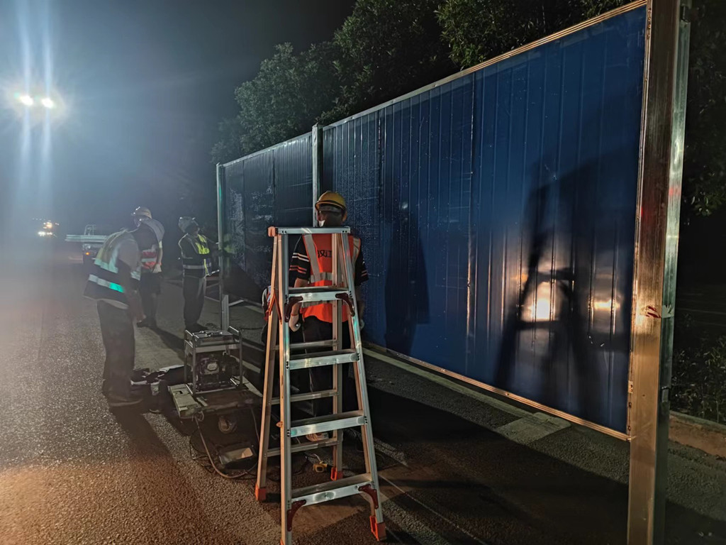 2022年7月2日,靜謐夜晚,萬(wàn)家燈火,大家忙碌一天都在享受夜晚的沉靜,可在南漳縣發(fā)展大道的施工現(xiàn)場(chǎng),圍擋安裝未曾停止。交安公司管理人員李旋東等同志與現(xiàn)場(chǎng)施工人員一同,堅(jiān)守一線、挑燈夜戰(zhàn),只為保障南漳縣發(fā)展大道改建項(xiàng)目施工順利進(jìn)行。