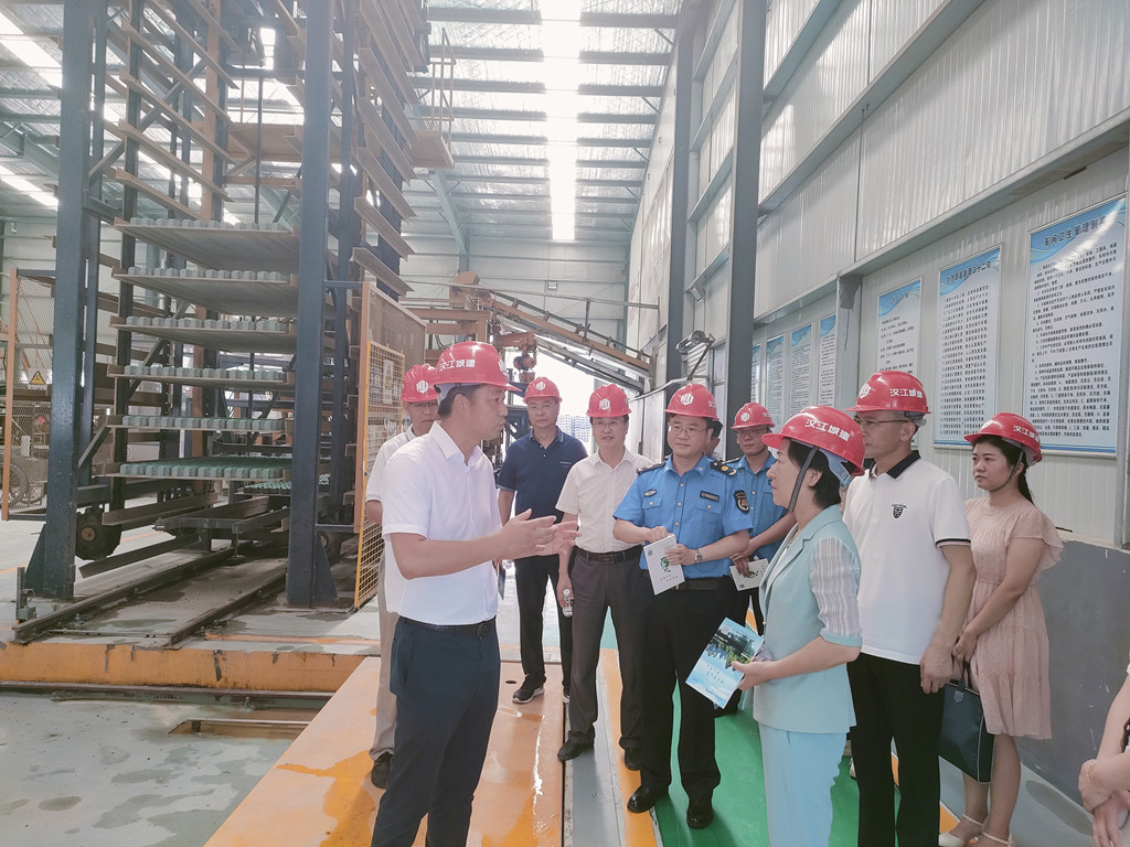 7月8日下午,市人大常委會副主任范景玉,市人大城環(huán)委主任委員、常委會城環(huán)工委主任李德明,市人大常委會城環(huán)工委副主任蒙愛成、王洪濤,市城管委副主任周冰一行就市人大代表關(guān)于建筑垃圾資源化利用的議案建議辦理情況到漢江城建集團(tuán)新材料公司進(jìn)行調(diào)研,漢江城建黨委書記、董事長盧國宏陪同調(diào)研。