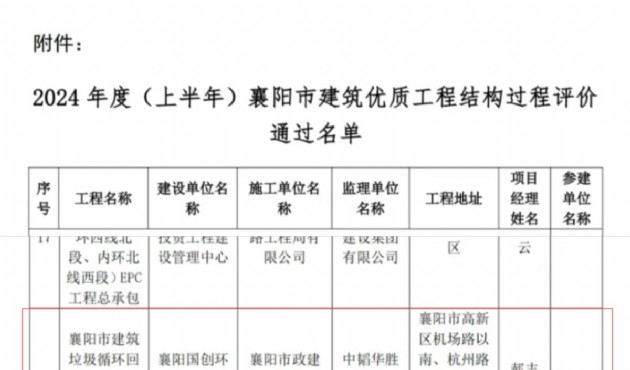 喜報(bào)!襄陽市建筑垃圾循環(huán)回收再利用項(xiàng)目(一期綜合樓)榮獲2024年度(上半年)襄陽市建筑優(yōu)質(zhì)工程結(jié)構(gòu)獎(jiǎng)