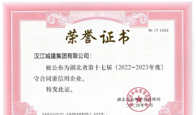 喜訊!漢江城建及旗下子公司被評為湖北省第十七屆“守合同重信用”企業(yè)