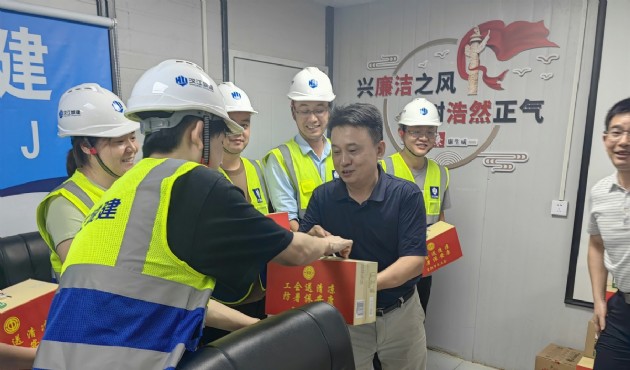 8月9日下午,襄陽(yáng)市總工會(huì)副主席孫俊峰一行來(lái)到襄陽(yáng)技師學(xué)院二期工程開(kāi)展“夏日送清涼”慰問(wèn)活動(dòng),對(duì)在高溫下堅(jiān)守崗位