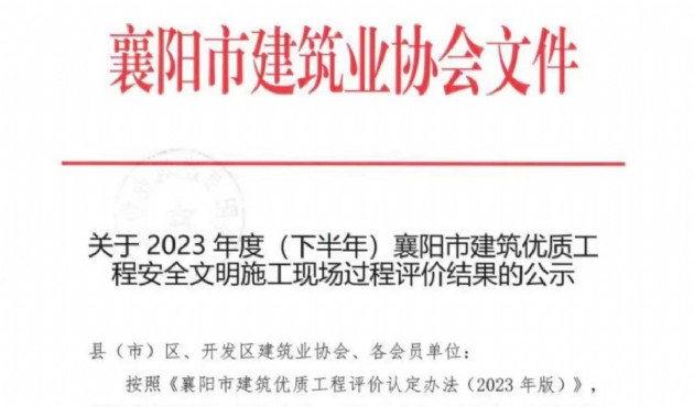近日,襄陽市建筑業(yè)協(xié)會表彰通報了2023年度襄陽市建筑工程“隆中杯”獎(市優(yōu)質(zhì)工程)評價結(jié)果,其中,漢江城建承建的