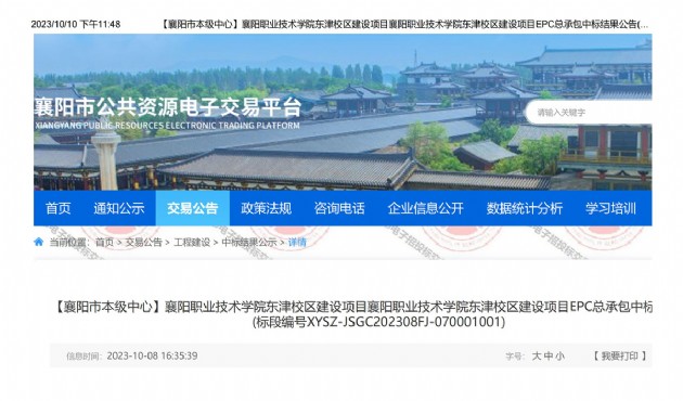 中標(biāo)襄陽職業(yè)技術(shù)學(xué)院東津校區(qū)建設(shè)項目EPC總承包項目