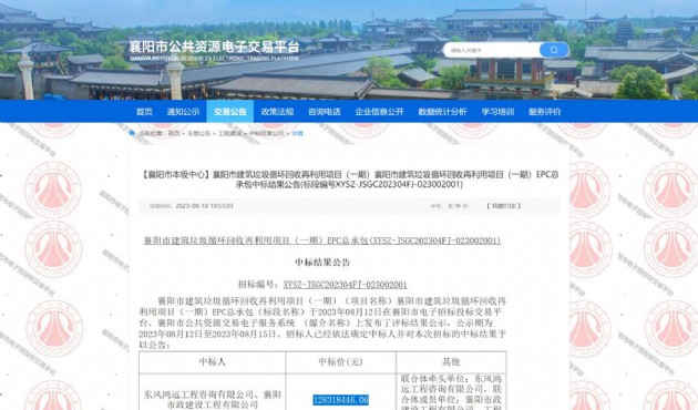 2023年8月18日,襄陽市政建設(shè)工程有限公司成功中標(biāo)襄陽市建筑垃圾循環(huán)回收再利用項(xiàng)目(一期)EPC總承包工程(以下簡稱“本項(xiàng)