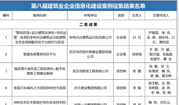 近日,中國(guó)建筑業(yè)協(xié)會(huì)工程技術(shù)與BIM應(yīng)用分會(huì)對(duì)第八屆建筑業(yè)企業(yè)信息化建設(shè)案例征集評(píng)選結(jié)果進(jìn)行了公示,由漢江城建申報(bào)的“