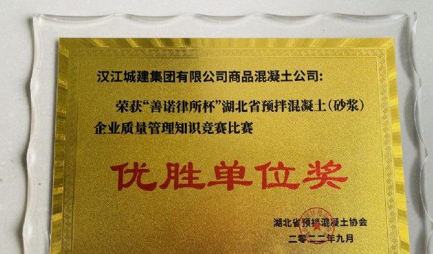 近日,漢江城建商品混凝土公司在湖北省預拌混凝土協(xié)會舉辦的2022年“善諾律所杯”湖北省預拌混凝土(砂漿)企業(yè)質量管