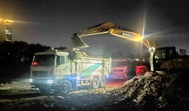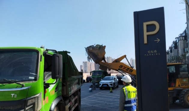 3月20日,襄陽市程通機械化工程有限公司在金地悅莑項目,投入中型全封閉式智能環(huán)保運輸車輛,開展地庫裝修垃圾清運工作。公司投入