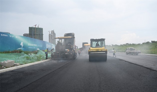 沿江大道東延伸段開始瀝青攤鋪