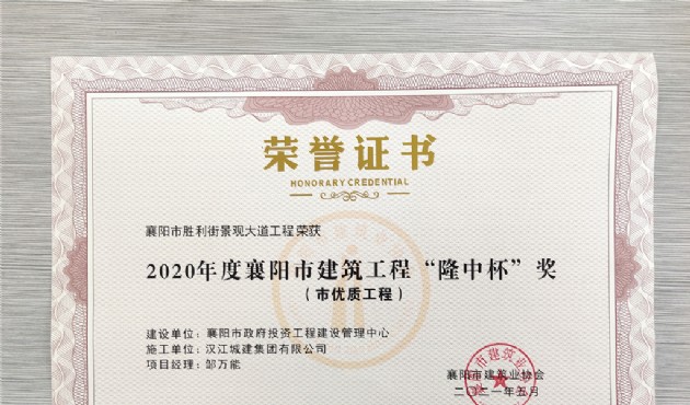 漢江城建承建的兩項(xiàng)工程獲2020年度市優(yōu)質(zhì)工程獎(jiǎng)