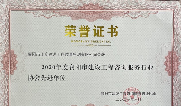 正實(shí)檢測(cè)公司榮獲“2020年度襄陽(yáng)市建設(shè)工程咨詢服務(wù)行業(yè)協(xié)會(huì)先進(jìn)單位”