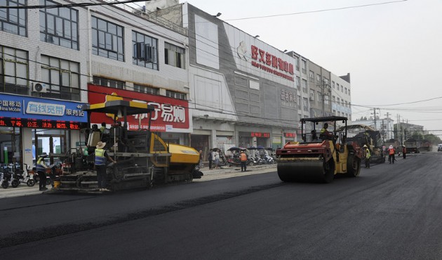 歐廟鎮(zhèn)污水管網(wǎng)改造項目進行瀝青攤鋪