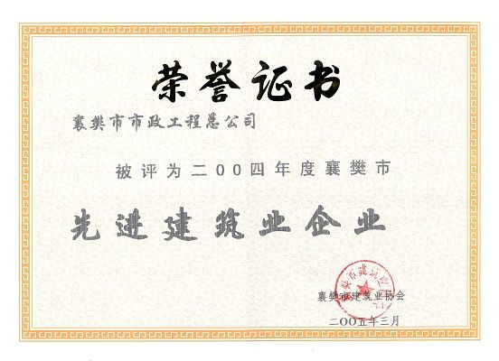 2004年襄樊市先進(jìn)建筑業(yè)企業(yè)