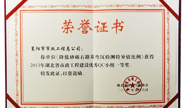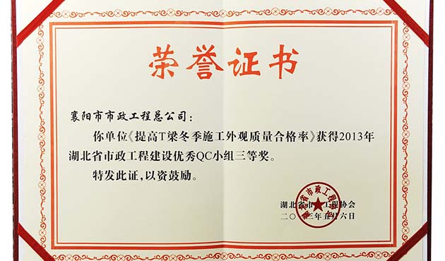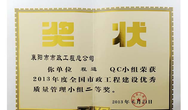 2013全國(guó)市政質(zhì)量管理小組二等獎(jiǎng)