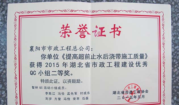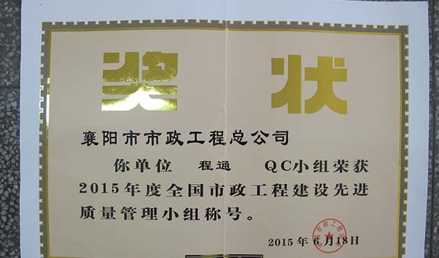 2015全國(guó)市政先進(jìn)質(zhì)量管理小組稱(chēng)號(hào)