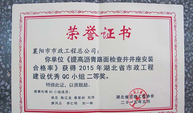 2015瀝青路面井座安裝合格率湖北省優(yōu)秀QC二等獎(jiǎng)