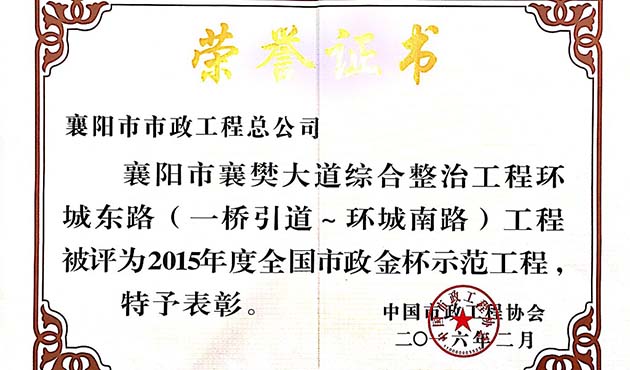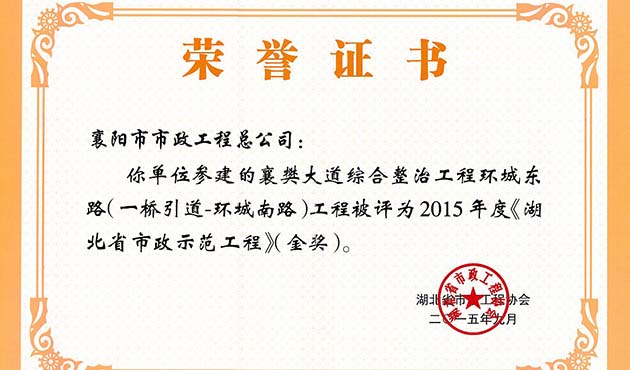 2015襄樊大道環(huán)城東路綜合整理湖北省示范工程金獎(jiǎng)