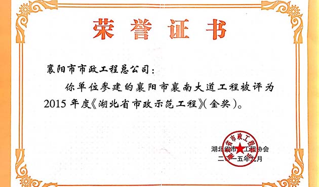 2015襄南大道湖北省市政示范工程金獎(jiǎng)