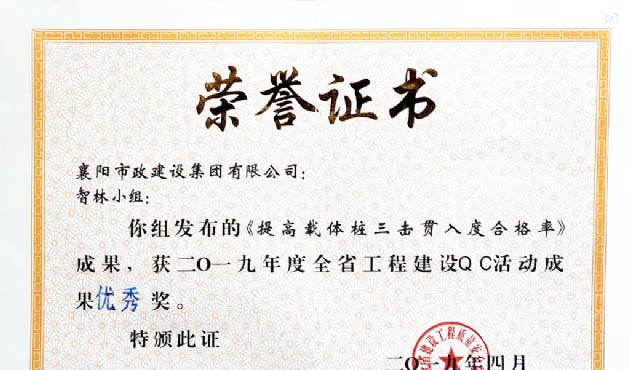 2019年“提高載體樁三擊貫入度合格率”全省工程建設(shè)QC活動(dòng)成果優(yōu)秀獎(jiǎng)