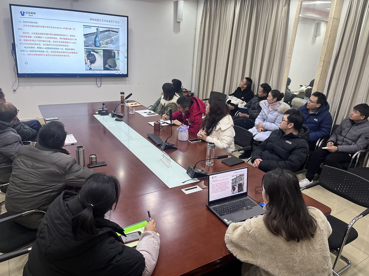 為進(jìn)一步加強(qiáng)正實(shí)建設(shè)工程質(zhì)量檢測有限公司的建設(shè)和管理,規(guī)范試驗(yàn)檢測工作,提升試驗(yàn)人員整體業(yè)務(wù)水平,保證試驗(yàn)檢測質(zhì)量。12月15號,正實(shí)公司組織全體員工在二樓會議室開展了水泥實(shí)驗(yàn)?zāi)芰ε嘤?xùn)。