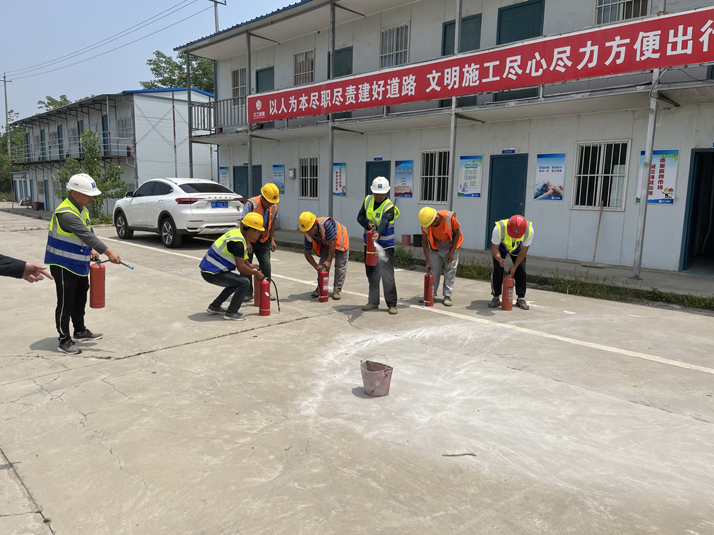 在實(shí)操環(huán)節(jié),安全員對(duì)現(xiàn)場(chǎng)各類消防器材的使用進(jìn)行了介紹,對(duì)滅火器1提、2拔、3瞄、4壓的使用方法進(jìn)行了詳細(xì)的實(shí)操演練,確保讓每一個(gè)施工人員都能正確使用滅火器,達(dá)到了預(yù)期的效果。