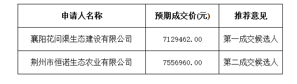 荊州市恒諾生態(tài)農(nóng)業(yè)有限公司 7556960.00 第二成交候選人