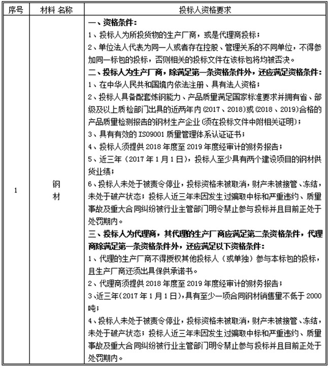 本次招標(biāo)內(nèi)容為:鋼材,標(biāo)包劃分情況、擬招標(biāo)數(shù)量、交貨地點及供貨期詳見下表: