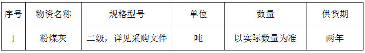2.1.1 采購(gòu)內(nèi)容:漢江城建集團(tuán)有限公司商混站生產(chǎn)原材料粉煤灰采購(gòu)。