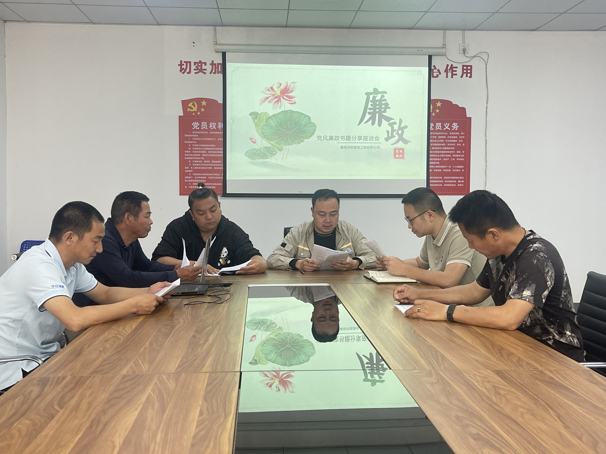 通過(guò)此次讀書(shū)分享活動(dòng),項(xiàng)目部全體人員更加深刻地懂得反腐倡廉的重大意義,我們要筑牢反腐倡廉的心理防線(xiàn),反腐不是一個(gè)項(xiàng)目經(jīng)理的事,而是項(xiàng)目部全體人員的頭等大事。下一步,項(xiàng)目部全體人員以此次讀書(shū)分享會(huì)為契機(jī),進(jìn)一步加強(qiáng)自身作風(fēng)建設(shè),以更加積極飽滿(mǎn)的工作狀態(tài)完成好項(xiàng)目各項(xiàng)既定目標(biāo)。